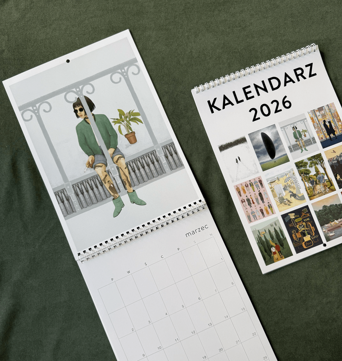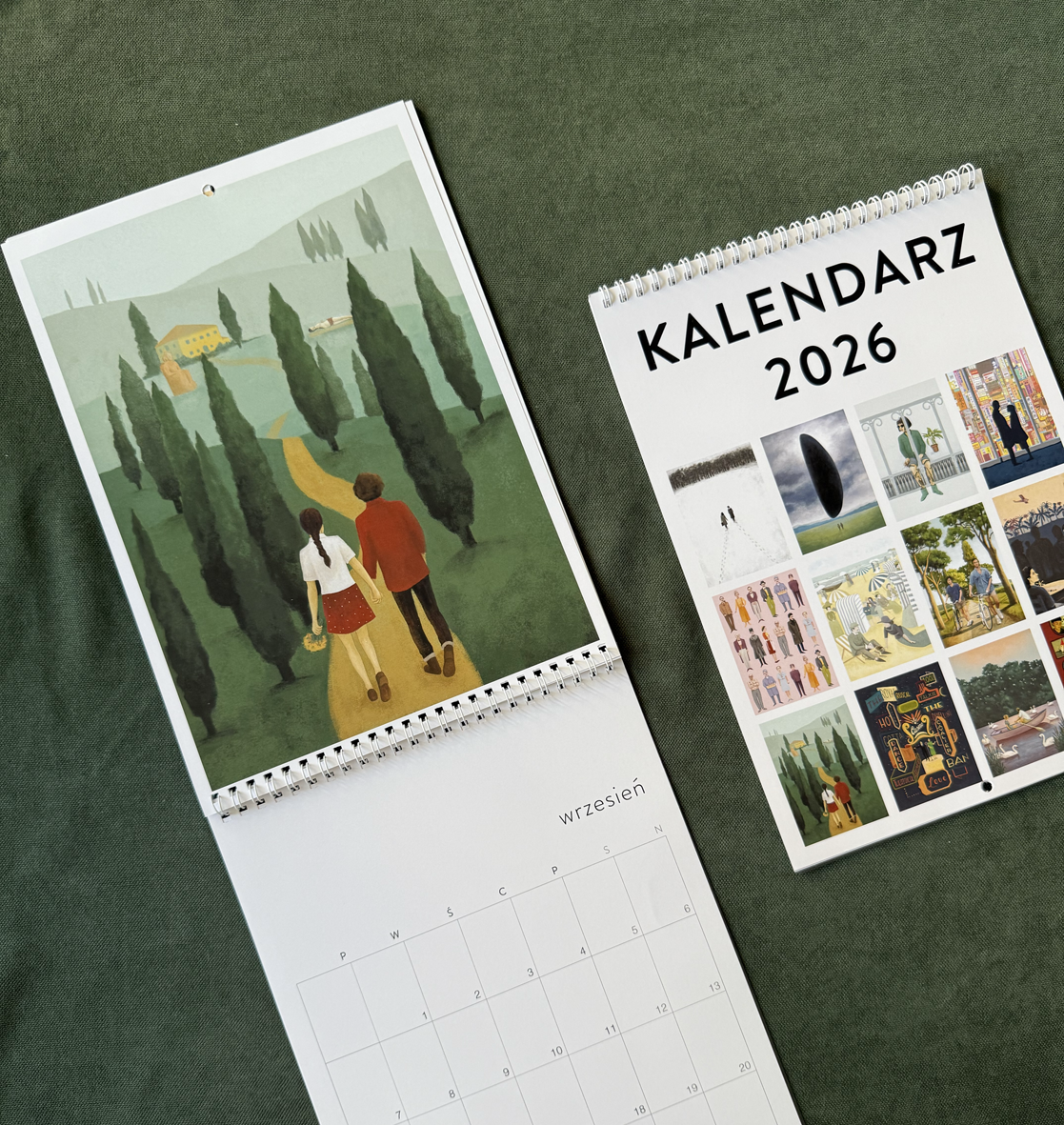 Kalendarz Romantyczny na rok 2025 rok. Składa się z 12 ilustracji, które opowiadają o miłości do drugiego człowieka, do zwierząt i do natury. Każdy miesiąc ma dedykowaną ilustrację, którą można po zakończeniu miesiąca oprawić w ramkę i powiesić na ścianie. W rubryczkach jest dużo miejsca na notatki. Można w nim zaznaczać i zapisywać ważne sprawki. Kalendarz dostępny jest w formacie a4 (99 zł) i w formacie a3 (129 zł), wysyłka kosztuje 20 zł.