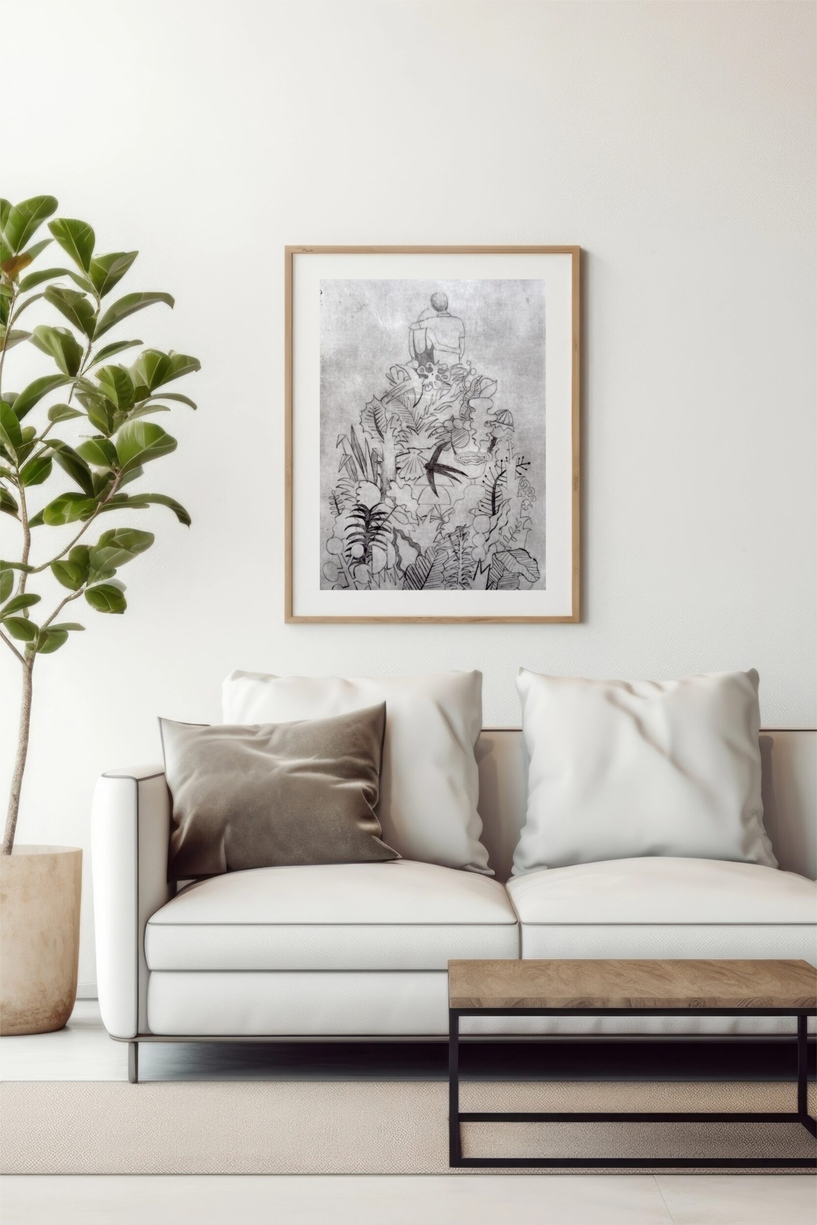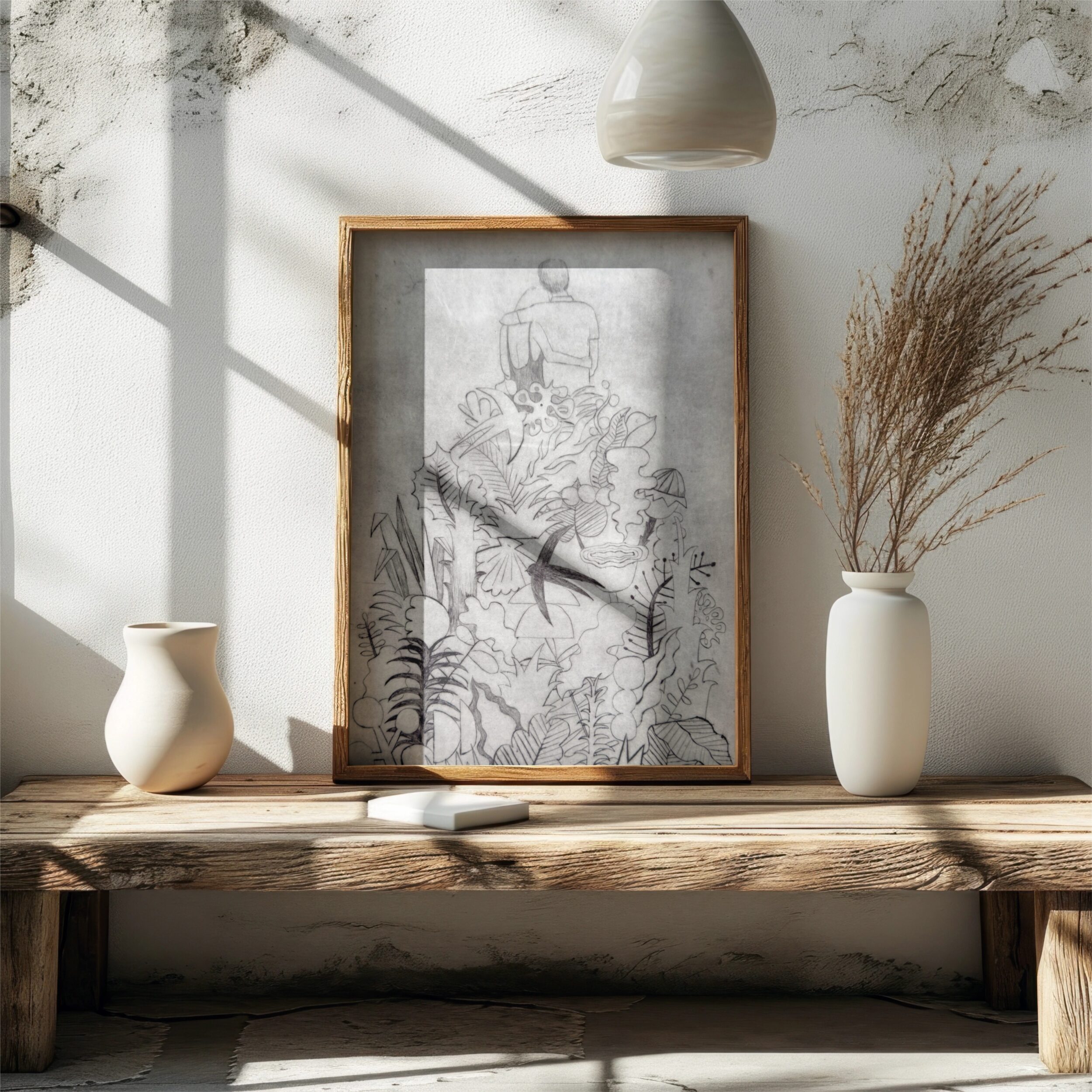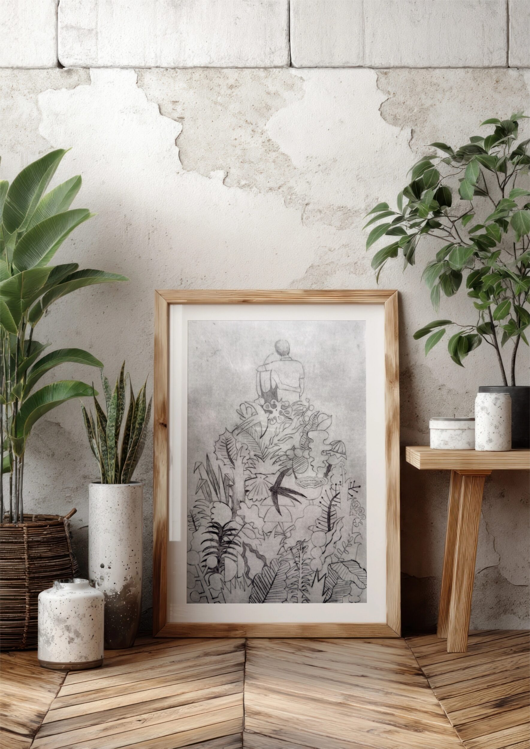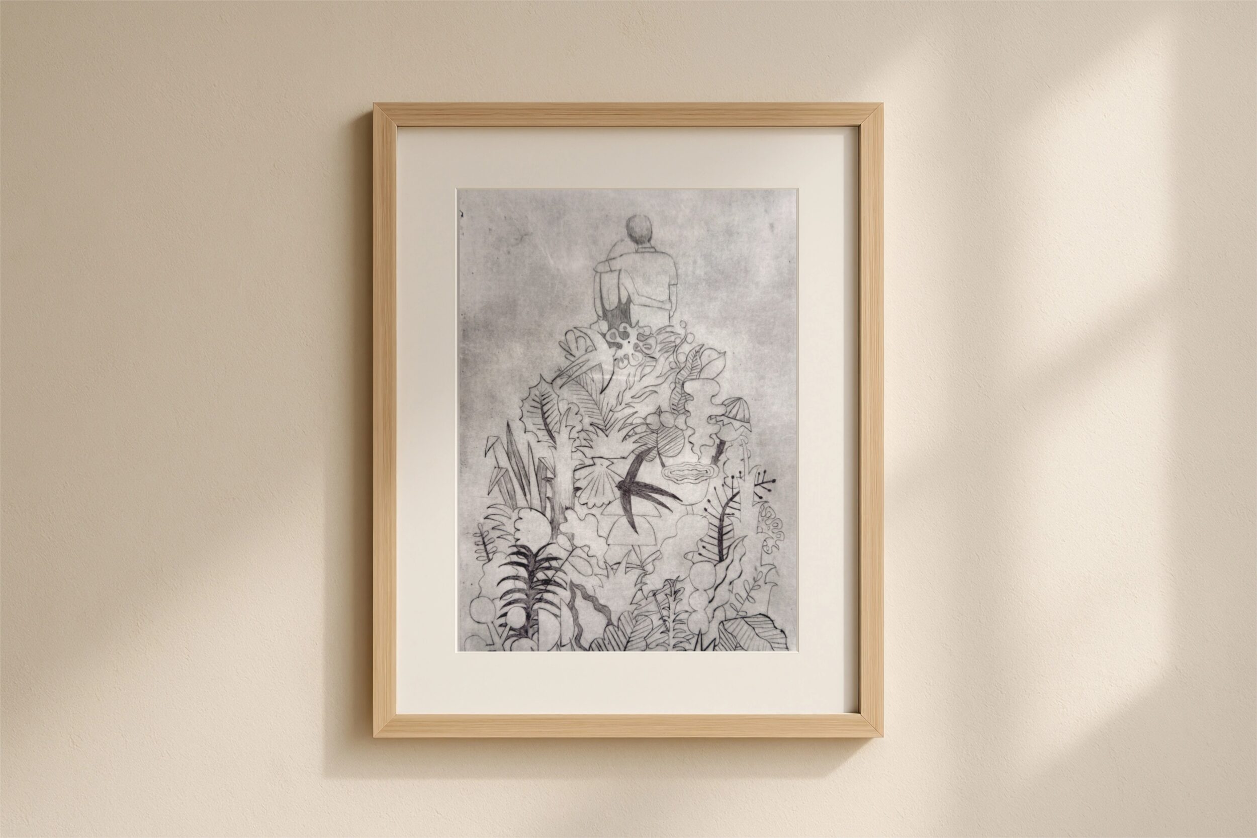Sucha igła (suchoryt) to technika druku wklęsłego. Rysunek na specjalnie przygotowanej blaszce wykonałam ostrymi narzędziami. W wyryte rowki wprowadziłam farbę drukarską, przepuściłam prace przez prasę drukarską. Grafika wydrukowana jest na dedykowanym włoskim papierze Fabriano 350 g. Format 40×50 cm.